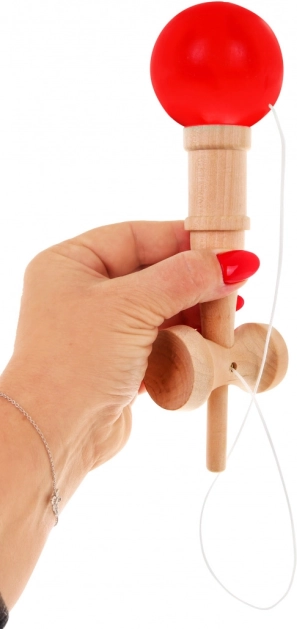 Kendama è un giocattolo tradizionale giapponese realizzato in legno di alta qualità, con una palla rossa rivestita di vernice per una migliore aderenza. Grazie a regole semplici, dove l'obiettivo è catturare la palla sulla punta o nelle coppe laterali, è un'attività amata per sviluppare il coordinamento occhio-mano. Consigliato non solo per bambini, ma anche per adulti che cercano un piacevole modo di rilassarsi.