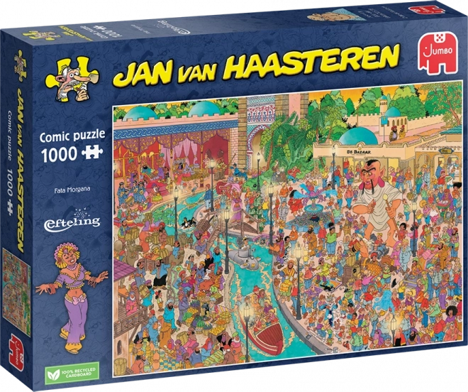 Goditi ore di divertimento con i puzzle JUMBO di alta qualità della serie di Jan van Haasteren. L’illustrazione “Efteling Fata Morgana” porta con sé l’umorismo tipico, tante piccole scene e motivi nascosti come la pinna di squalo, le mani vaganti e il ritratto di Haasteren. Con i suoi 1000 pezzi e un disegno colorato e dettagliato, il montaggio è coinvolgente per tutta la famiglia.