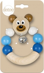 Sonaglio in legno con orsetto di colore blu. Facile da afferrare, il campanellino emette un tintinnio delicato.