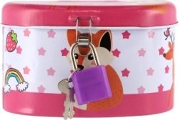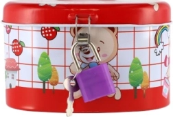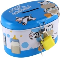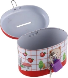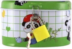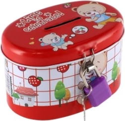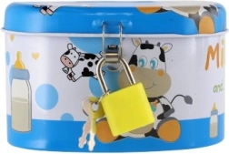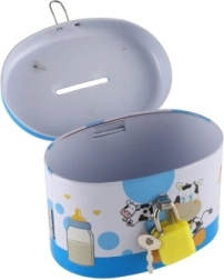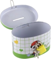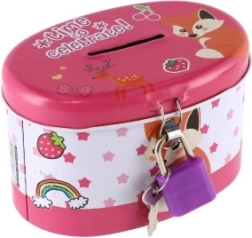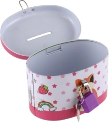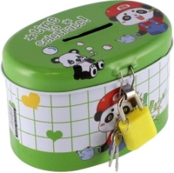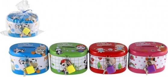 Un salvadanaio ideale per bambini che combina sicurezza e divertimento. Il salvadanaio per bambini è realizzato in metallo resistente ed è dotato di una piccola serratura che garantisce che i soldi rimangano al sicuro. Il coperchio è decorato con allegre illustrazioni che attirano ogni piccolo risparmiatore: