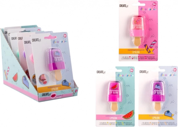 Scopri il gloss per labbra Candy a forma di ghiacciolo, un accessorio essenziale per un look elegante e gustoso.