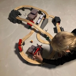 Set di piste ferroviarie in legno con piattaforma girevole – 50 pezzi
