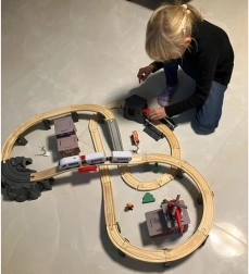 Kruzzel 22754 Pista ferroviaria in legno a batteria 70 pezzi, 480 cm
