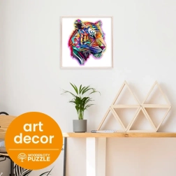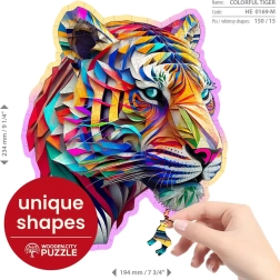 Goditi il montaggio di un originale puzzle in legno con il motivo della tigre colorata di WOODEN CITY. Grazie ai pezzi unicamente sagomati, incluse silhouette di animali, e alla lavorazione laser di precisione, questo puzzle offre una maggiore difficoltà e un’esperienza fantastica. Il puzzle è eco‑friendly, senza imballaggi in plastica, ed è un ottimo regalo per ogni occasione.