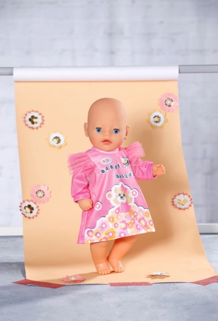 Dolcissimo vestitino per la bambola BABY born Little da 36 cm, con delicato design rosa raffigurante un orsetto ballerina e un prato fiorito. Grazie al taglio easy fit, vestire e svestire è facile anche per le manine dei più piccoli. La qualità della lavorazione garantisce gioco duraturo e un abbigliamento confortevole. Nella confezione è incluso anche un comodo appendino.