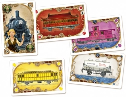 Boarding the Train: Treno: Giro del mondo introduce un elemento nuovo nei meccanismi già noti, iniziando con due mazzi separati di carte colorate: navi e treni. All’inizio della partita si rivelano tre carte di ciascun tipo e, man mano che un giocatore pesca carte, si scoprono nuove carte dal mazzo scelto dal giocatore.