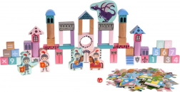 Le costruzioni includono blocchi sicuri dipinti in tonalità pastello, che permettono ai bambini di costruire un castello unico con cavalieri e draghi.