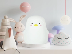 La graziosa lampada notturna a forma di pinguino porta una luce soffusa e un addormentarsi sereno nella cameretta. È morbida in silicone, ha controllo touch e offre luce bianca calda e colori RGB. Grazie alla batteria integrata da 1200 mAh è completamente portatile e può illuminare per tutta la notte.