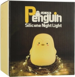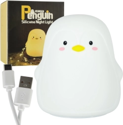 Lampada notturna per bambini a forma di pinguino, in silicone, touch, LED RGB, bianca