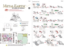 Rimuovi i singoli pezzi dai fogli metallici; se necessario usa piccole tronchesine (non incluse). I pezzi si collegano tra loro tramite incastri composti da una linguetta e un foro. Piega la linguetta con piccole pinze a becchi sottili (non incluse) e unisci progressivamente tutti gli incastri fino a ottenere un pezzo maestro dall’aspetto molto realistico!