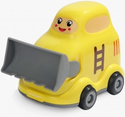 Il bulldozer in plastica resistente ha bordi lisci, scorre su ruote e offre un pratico coperchio apribile per riporre i pezzi o i piccoli tesori.