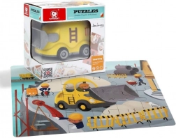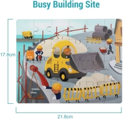 Scopri un giocattolo intelligente che unisce il divertimento all'apprendimento. Il puzzle in legno a tema mezzi di trasporto (cantiere) è nascosto direttamente nel bulldozer di plastica. Quest'ultimo ha una finitura liscia e sicura, ruote per muoversi e un coperchio inferiore apribile, in cui i bambini possono riporre comodamente il puzzle o i loro tesori.