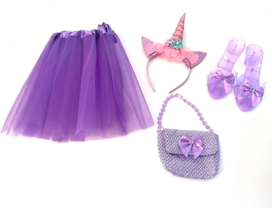 Questo incantevole set da principessa trasforma i momenti di ogni giorno in un'avventura da fiaba. Grazie a quattro accessori accuratamente coordinati creerai in un attimo un costume completo per bambini per il gioco in casa, il carnevale e le feste di compleanno.