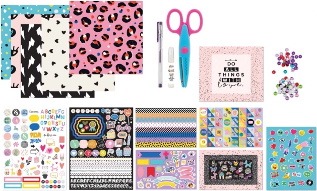 Set creativo per realizzare un Diario – il set include diario, penna, pietrine decorative e materiale decorativo.