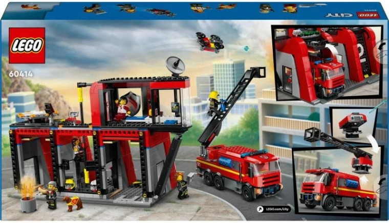 - Stazione dei pompieri d’azione – struttura moderna, eliporto, palo per lo scivolo delle minifigure, cucina e aree relax.