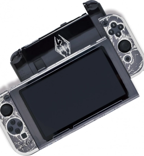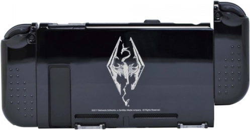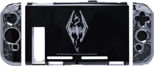 Custodia ufficiale in tre parti per Nintendo Switch ispirata a Skyrim. Design elegante, accesso completo ai comandi e protezione per console e Joy‑Con.