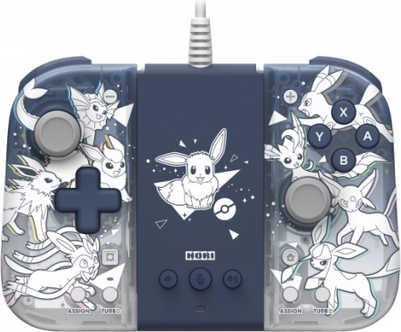 Il set HORI Split Pad Pro Attach Set (Eevee Evolutions) offre un controllo perfetto del gioco in ogni situazione. Montandolo sulla console Nintendo Switch ottieni una portatile confortevole con comandi completi; collegandolo all’adattatore lo usi come controller cablato per giocare sulla TV. Il guscio semitrasparente con grafica di Eevee e delle sue evoluzioni farà felici tutti i fan.