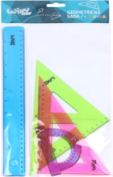 • Contenuto del set: righello dritto 30 cm (blu), piccolo goniometro (viola), 2× triangolo (rosa e verde)