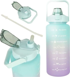 Il bidon ad alta capienza da 2 litri è progettato per l’idratazione per tutto il giorno. Sul corpo della bottiglia trovi marcatori orari che ti motivano a bere regolarmente e, grazie al beccuccio ribaltabile con cannuccia, puoi sorseggiare comodamente senza inclinare.