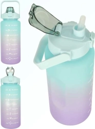 Borraccia sportiva 2 l con pratica cannuccia, tappo ermetico e scala motivazionale con indicazioni orarie ti aiuta a mantenere l’idratazione a casa, in palestra e in viaggio. L’ampia apertura facilita la pulizia e l’aggiunta di ghiaccio o frutta, la comoda maniglia garantisce un trasporto agevole.