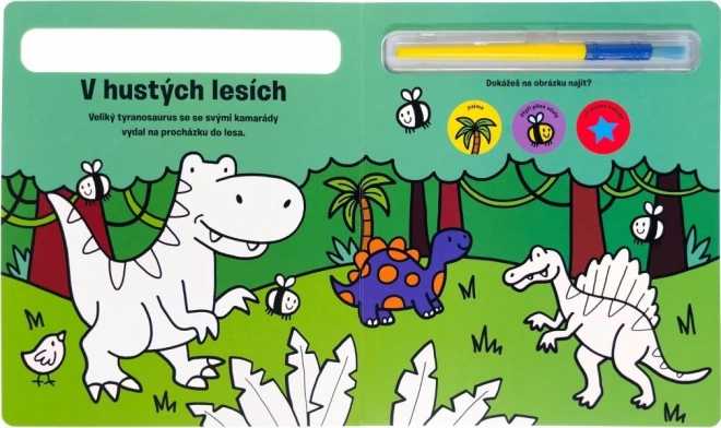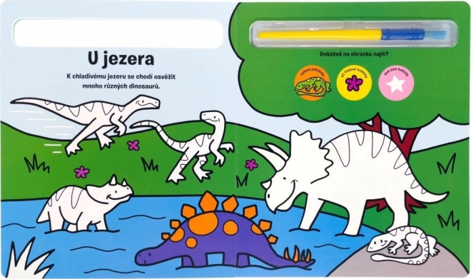Libro creativo per bambini che offre divertimento infinito. Colorami! I dinosauri portano colori magici che appaiono solo con il pennello e l'acqua.<0>
