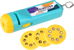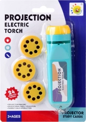 Questa torcia proiettore tascabile trasforma i momenti serali in un racconto coinvolgente. Tre dischi intercambiabili offrono i temi dinosauri, insetti e frutta, ciascuno con otto diapositive – per un totale di 24 immagini. Basta inserire il disco, scegliere l’immagine ruotando e proiettare su una superficie liscia.