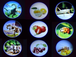 Tre dischi intercambiabili con 8 diapositive ciascuno coprono temi amatissimi: dinosauri, insetti e frutta. I bambini avranno sempre qualcosa di nuovo da scoprire.