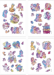 Divertiti e decora in modo creativo con i tatuaggi temporanei MY LITTLE PONY. La confezione include 4 fogli pieni di motivi colorati dei pony preferiti, facili da applicare con acqua e altrettanto semplici da rimuovere. Una scelta ideale per bambini dai 3 anni, per le feste e per il gioco quotidiano.