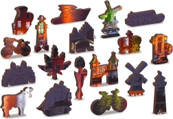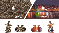 Ogni pezzo è sia parte del tutto che ha una sua forma unica rappresentando edifici urbani, animali o oggetti. Inoltre, l'assemblaggio è più impegnativo, il che contribuisce a un maggiore divertimento e sfida. Il puzzle è anche decorato con un affascinante scenario di Amsterdam di notte, perfettamente inciso su ogni pezzo.