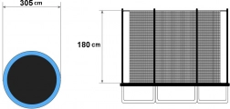 La rete interna impedisce il contatto con pali e molle creando un’area sicura per saltare su un diametro di 305 cm.
