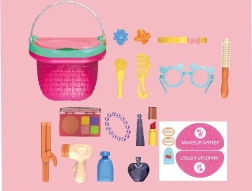Scoprite la magia del trucco e della cura dei capelli con questo adorabile set di gioco in un pratico cestino. All'interno troverete fino a 18 accessori, come profumo, rossetto, ombretto, phon e accessori per capelli – ideale per un gioco creativo e per stimolare la fantasia.