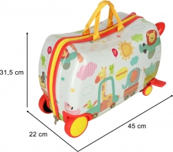 Motivi di animali allegri e colori vivaci invogliano i bambini a preparare da soli il bagaglio e a gioire del viaggio.