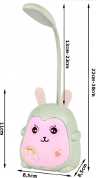 Questa deliziosa lampada da notte e da tavolo combina un design giocoso con funzioni pratiche. Il braccio flessibile permette di direzionare facilmente la luce sul libro o sul quaderno, mentre il corpo della lampada crea una atmosfera accogliente per un sonno tranquillo.