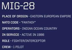 Iconico velivolo MiG-28 dall'universo cinematografico di Top Gun, ora disponibile come modello a blocchi da costruzione. Divertiti a costruire e giocare con un modello che incarna il “cattivo” del film!