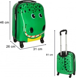Questa valigia per bambini, leggera e resistente, è ideale come bagaglio a mano. La superficie verde lucida con la simpatica grafica del coccodrillo attira i bambini, mentre i genitori apprezzano la dotazione pratica per viaggiare in comodità.