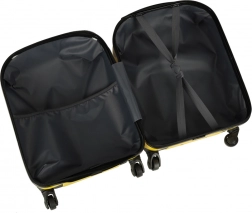 L'interno è suddiviso in due pratici scomparti: uno con divisorio a zip e uno con cinghie incrociate per fissare gli oggetti in sicurezza. Nella valigia entrano abiti per alcuni giorni e i giocattoli preferiti.
