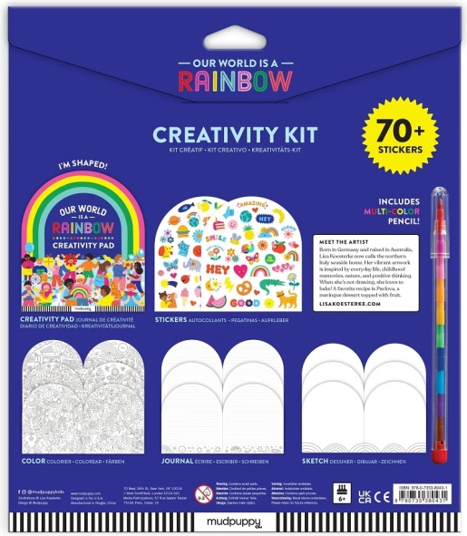 Set creativo Il nostro mondo arcobaleno è un accessorio divertente e pratico per ogni creazione dei bambini. Con oltre 70 adesivi e una penna multicolore porterà gioia a casa e in viaggio.