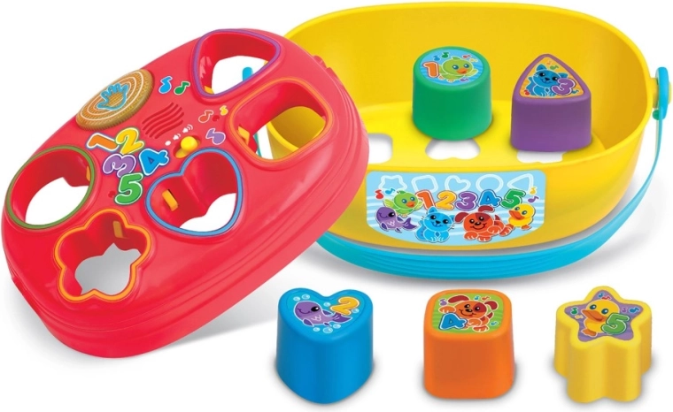 Scopri il colorato smistatore di forme con melodie, lucina lampeggiante e blocchi di varie forme che il bambino inserisce nelle aperture corrette. Per ogni inserimento corretto viene ricompensato con suoni allegri e versi di animali. Il giocattolo ha una comoda maniglia per un facile trasporto e un coperchio removibile per estrarre rapidamente i blocchi e ricominciare il divertimento. Gli elementi musicali favoriscono lo sviluppo dell'udito e stimolano la percezione sensoriale.