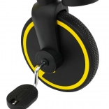 Sella in schiuma con regolazione in altezza, manopole antiscivolo e asta di guida regolabile in altezza (58–86 cm) per una conduzione facile.