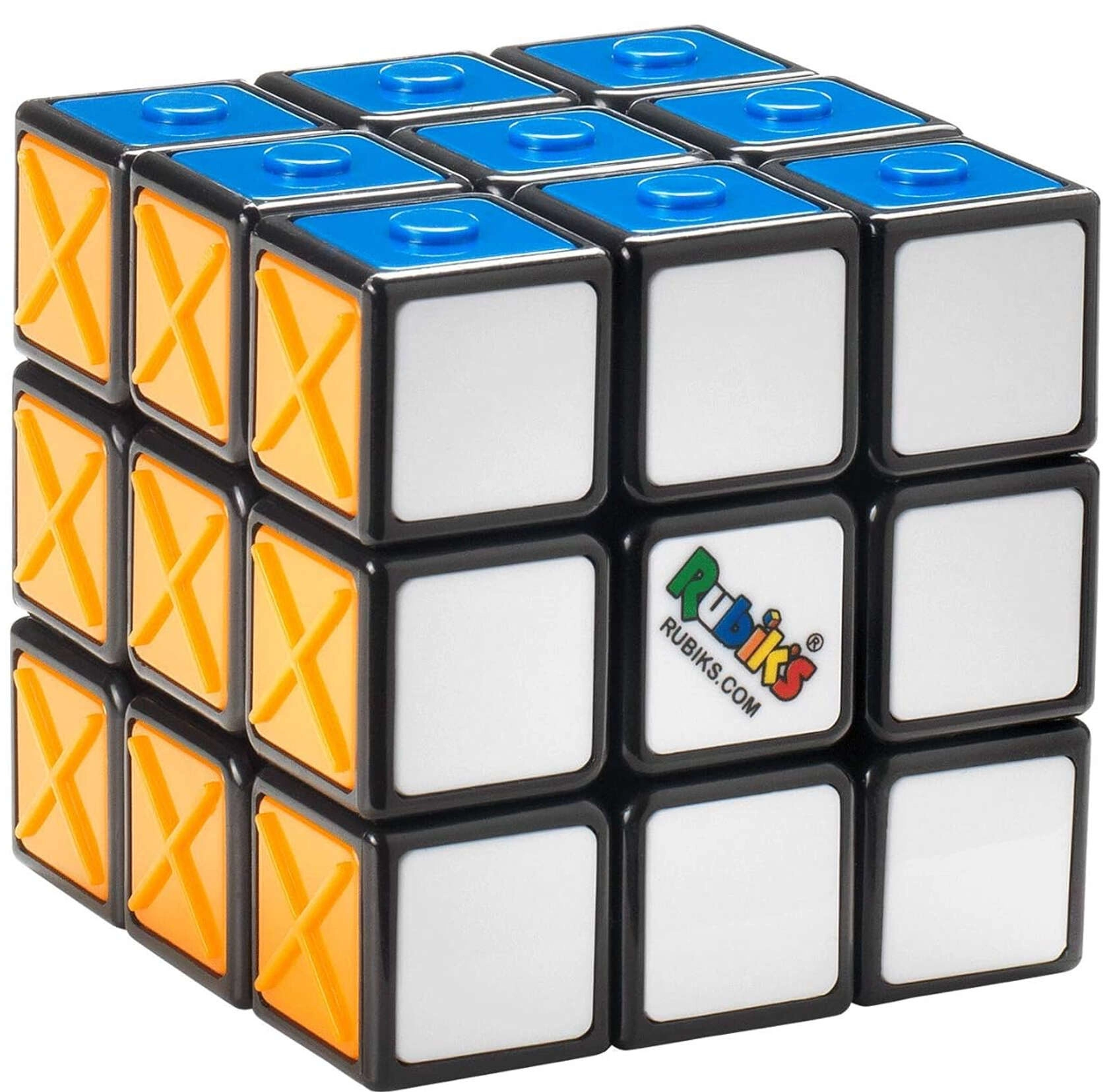 Il Cubo di Rubik 3x3 Rubik’s Sensory Cube porta il leggendario rompicapo in una versione accessibile con motivi in rilievo su ogni colore. Le texture – puntini (giallo), quadrati (rosso), cerchi pieni (blu), anelli (verde), croci (arancione) e liscio (bianco) – permettono di distinguere i lati anche al tatto.