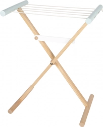 La costruzione stabile con asta di sicurezza garantisce che lo stendibiancheria rimanga solido anche durante giochi intensi. Il colore delicato del legno naturale conferisce un aspetto incantevole che si adatta a qualsiasi interno. Al termine del gioco, lo stendibiancheria si piega facilmente, risparmiando spazio.
