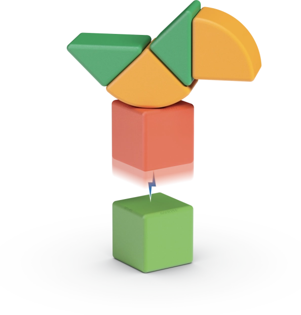 La combinazione di cubetti e altre forme sviluppa creatività, motricità fine e pensiero logico fin dalla tenera età.