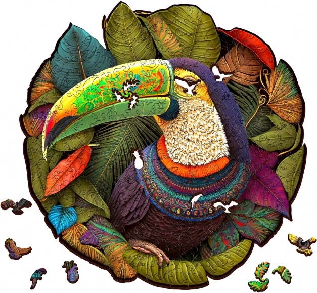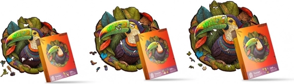 Scopri un divertimento creativo con il puzzle in legno con motivo del tucano, che unisce finitura premium, legno ecologico 100% FSC e forme uniche dei pezzi. Grazie al taglio laser di alta precisione e alla stampa digitale UV, offre colori vivaci, bordi lisci e un'esperienza di composizione eccellente per tutta la famiglia.