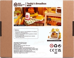 La Pasticceria dell’Orsetto è una graziosa miniatura per chi ama il fai-da-te e il design. Il kit contiene tutto il necessario per l’assemblaggio, inclusi colla e strumenti; servono solo le forbici. Una volta accesa la luce LED, la pasticceria si trasforma in un caldo e accogliente punto luce che esalta ogni dettaglio di vetrine, cartellini e prodotti da forno.