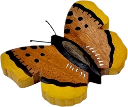 Porta un tocco di natura in casa con il magnete in legno a forma di farfalla. Ogni pezzo è realizzato e dipinto a mano; la colorazione deriva dalla combinazione di fino a cinque tipi di legno, dalla chiara gmelina al giallo jackfruit fino alla cassia più scura. Il risultato è un aspetto autentico con delicate venature del legno.