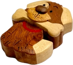 Questa grande calamita in legno con il motivo del cane con osso unisce lavorazione artigianale accurata e materiali naturali. Ogni pezzo è composto con cura da essenze di legno di diversi colori ed è solo rifinito a mano – senza verniciatura a copertura totale, in modo da esaltare la venatura naturale del legno.
