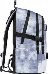 Lo zaino offre tre scomparti separati con organizer e una tasca imbottita per notebook da 15" o tablet, tasche laterali per bottiglia e cinghie frontali per fissare lo skateboard. Grazie alle cinghie completamente regolabili e allo schienale ergonomico, si adatta perfettamente alla corporatura. Completano il tutto elementi riflettenti, affidabili cerniere YKK e un ciondolo metallico bonus a forma di skate.