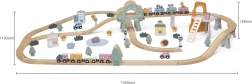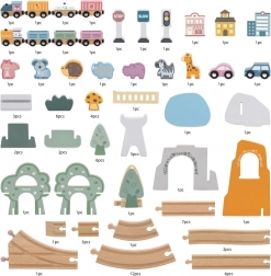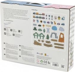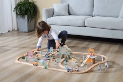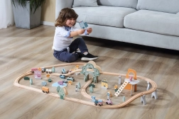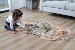 Il gioco è sicuro e durevole: bordi lisci, colori a base d'acqua e legno massiccio sono rispettosi dei bambini e della natura. Manipolando binari e accessori i bambini allenano la coordinazione occhio–mano, il pensiero logico e la collaborazione nel gioco condiviso.