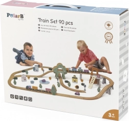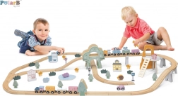 Scoprite un mondo di fantasia con la pista per trenino in legno POLARB. Il set comprende 90 pezzi lavorati con cura: rettilinei e curve, rialzi e un ponte, un trenino con vagoni, segnali stradali, casette, veicoli, animaletti, alberi e rocce. Grazie ai collegamenti semplici si possono assemblare infiniti tracciati e scenari che i bambini modificano e ampliano di continuo.