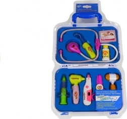 Il set include uno stetoscopio che riproduce il battito cardiaco, un termometro con possibilità di impostare la temperatura e molti altri accessori. La compatta valigetta con solido manico garantisce ordine e facile trasporto a casa e in viaggio.